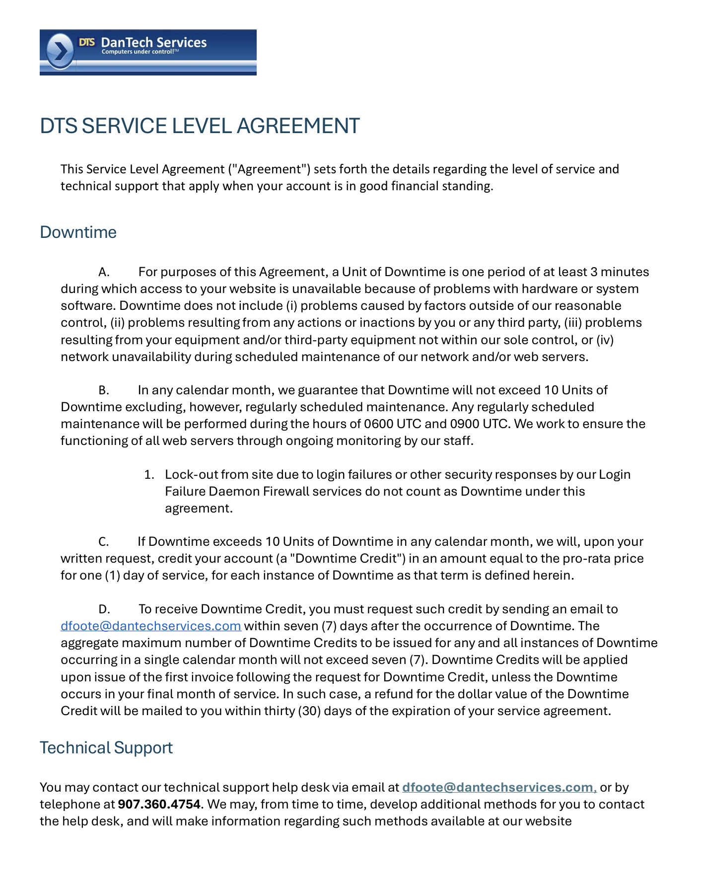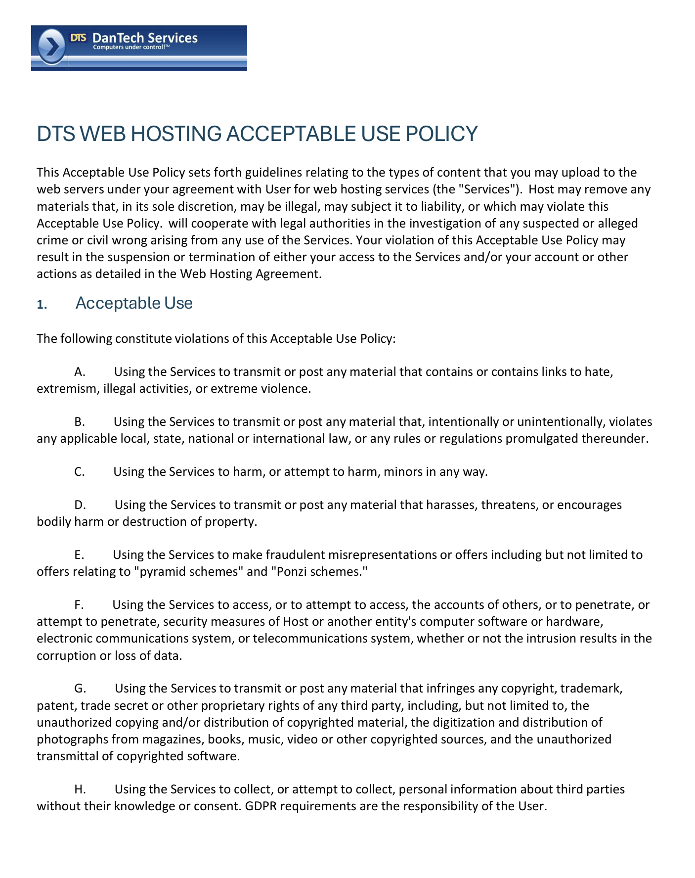 Links below leads to Dantech Services, Inc.  web services legal documents, used for the agreements between DanTech Services company and its customers.